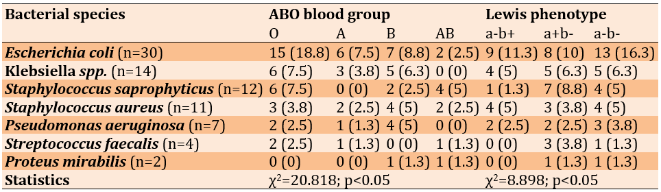 27. Ghasemi N, Ayatollahi J, Mosadegh A, Mahdavi SM. Relationship between ABO blood group antigens and the type of pathogen in urinary tract infection in patients referred to university laboratories in Yazd. Sci J Iran Blood Transfus Organ. 2009;5(4):267-73. [Persian] [
